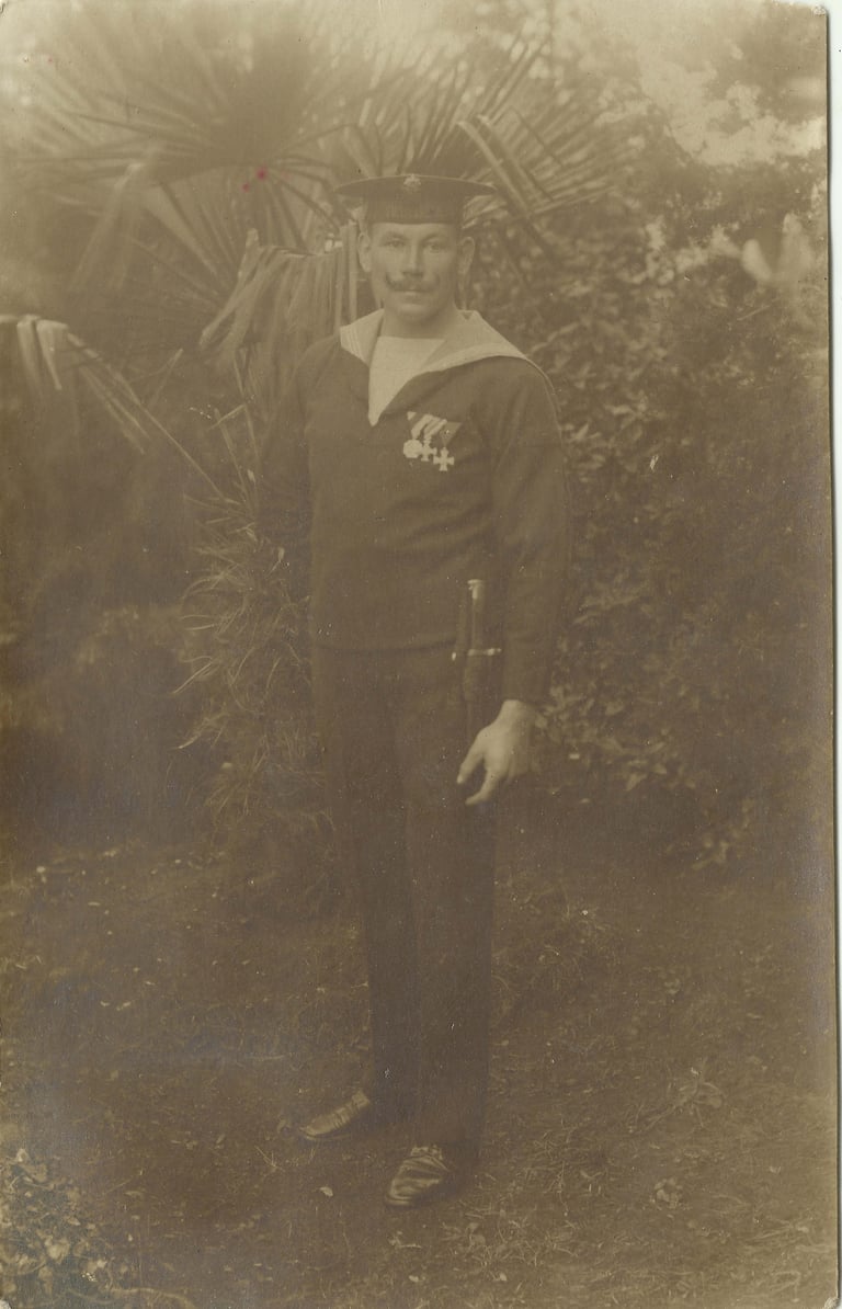 Az SMS Zrinyi hadihajó legénysége, Zsoldos György felülről a második sorban jobbról a második. 1914.