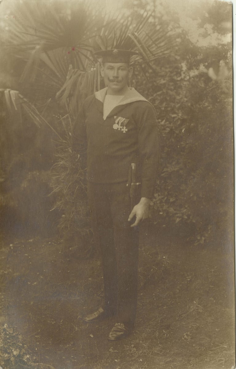 Csoportkép az SMS Zrinyi hadihajóról. Zsoldos György középen sapkában.